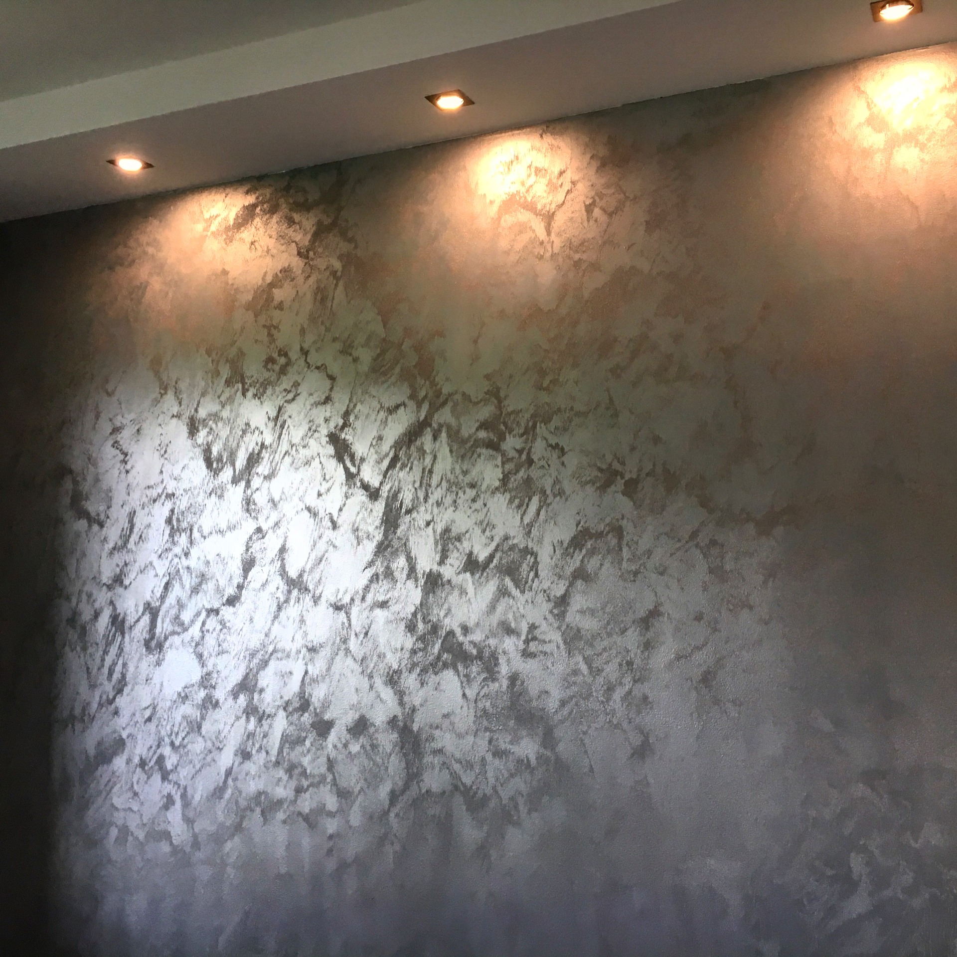 Fények játéka az egyedi technikával felhordott, több rétegű dekorfestéken. Csorna Polgármesteri Hivatal